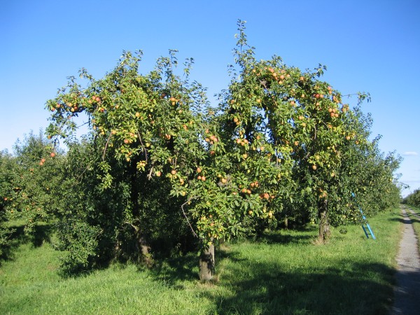 Aussehen: Die Bäume haben flachkugelige Kronen mit überhängenden Zweigen. Sie können sehr alt werden, unsere Herbstprinzen sind oft älter als 80 Jahre! Sie mögen schwere Böden und norddeutsches Klima, sind robust, frost- und krebswiderstandsfähig und für Hausgärten im Norden Deutschlands bestens geeignet! Die Früchte sind meist groß und kegelförmig, länglich, teils rot gestreift.